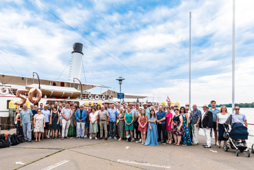 50-Jähriges Betriebsjubiläum. Bodenseerundfahrt auf derm historischen Dampfschiff Hohentwiel mit 80 Mitarbeitern und Partnerinnen. Anschließende Party in der Werft 1919